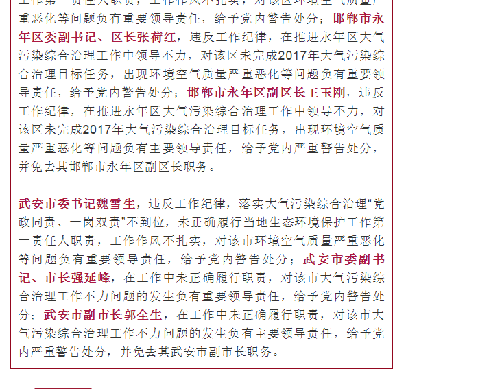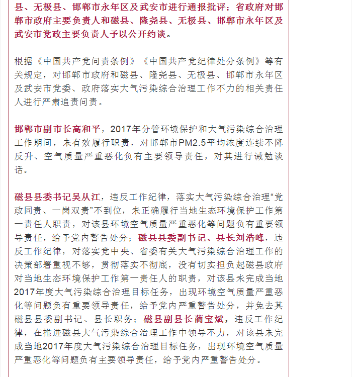 河北发布:5人被免!河北1市和5县市区有关党政领导因空气质量恶化被追责
