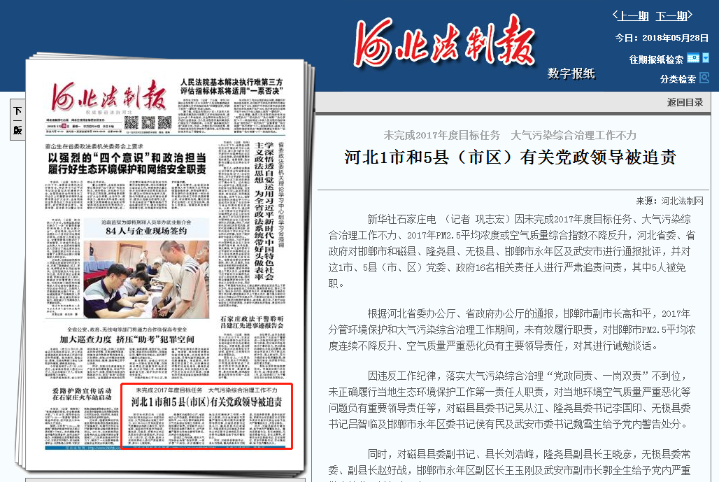 河北法制报:河北1市和5县(市区)有关党政领导被追责