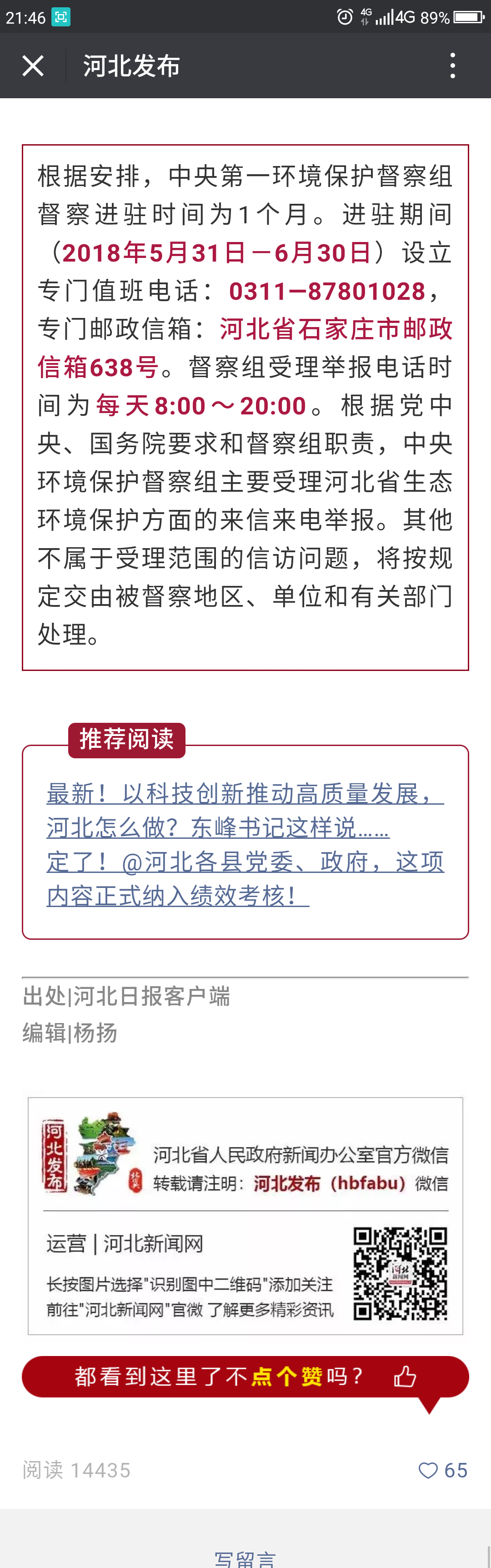 央广网:中央第一环保督察组进驻河北省开展督查“回头看”