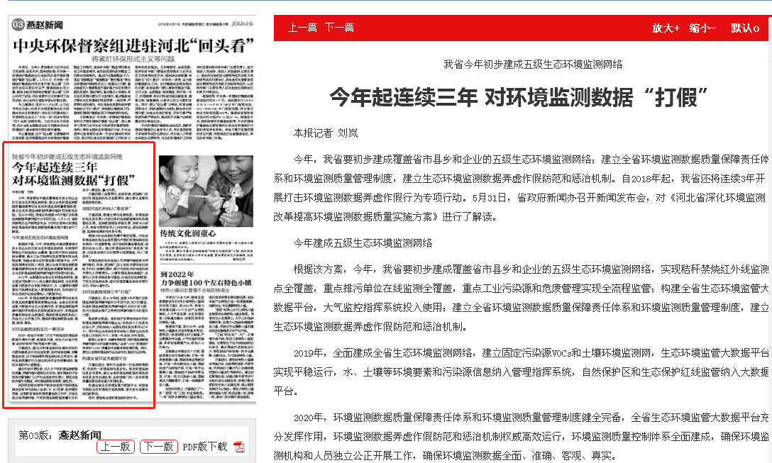 今年,我省要初步建成覆盖省市县乡和企业的五级生态环境监测网络;建立全省环境监测数据质量保障责任体系和环境监测质量管理制度,建立生态环境监测数据弄虚作假防范和惩治机制。自2018年起,我省还将连续3年开展打击环境监测数据弄虚作假行为专项行动。5月31日,省政府新闻办召开新闻发布会,对《河北省深化环境监测改革提高环境监测数据质量实施方案》进行了解读。