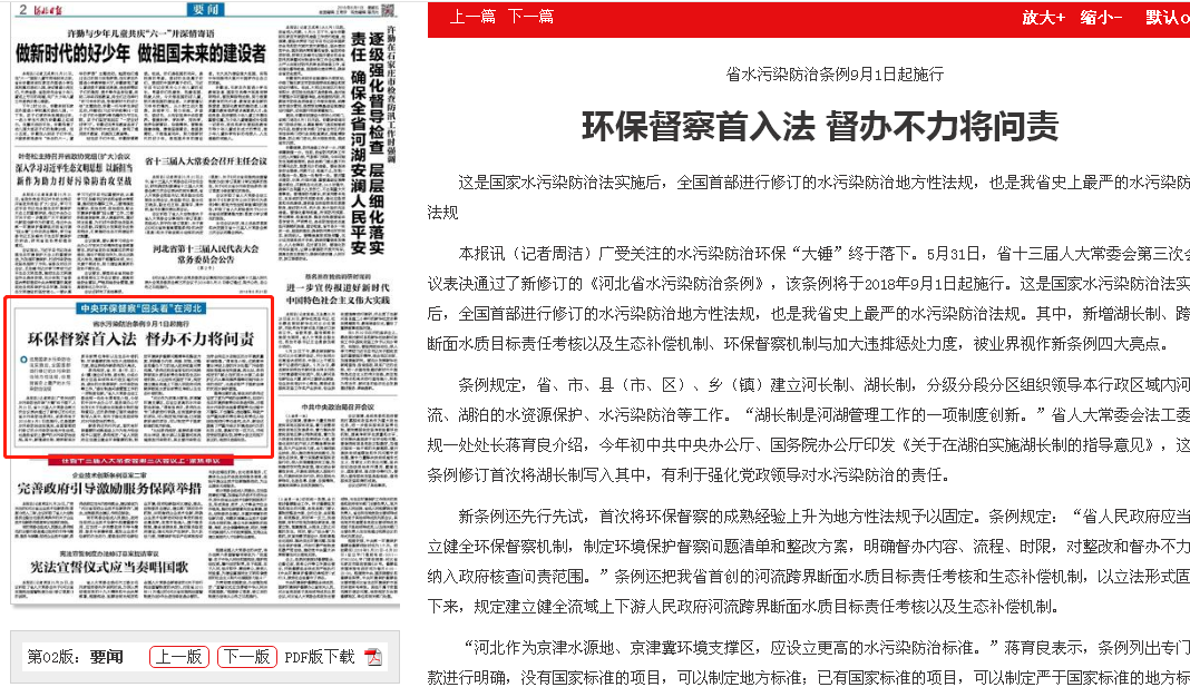 河北日报:【中央环保督察“回头看”在河北】环保督察首入法 督办不力将问责