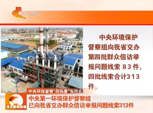 河北电视台《河北新闻联播》:中央环保督察“回头看”在河北 中央第一环境保护督查组 已向我省交办群众信访举报问题线索313件 来源:省生态环境宣传教育中心 时间:2018-06-06