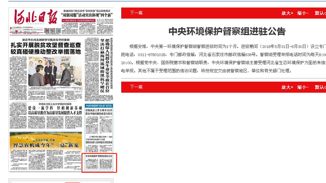河北日报头版专栏:省级执法工作专班对18件群众举报问题线索进行核实