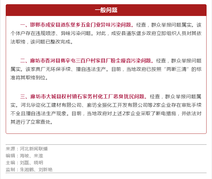 河北省公开8起中央环保督察组交办群众信访举报问题查处整改情况