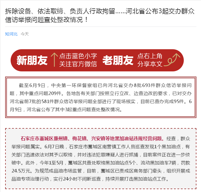 知河北:拆除设备、依法取缔、负责人行政拘留……河北省公布3起交办群众信访举报问题查处整改情况!
