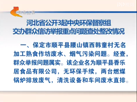 河北卫视-河北新闻联播:河北省公开3起中央环保督察组交办群众信访举报重点问题查处整改情况
