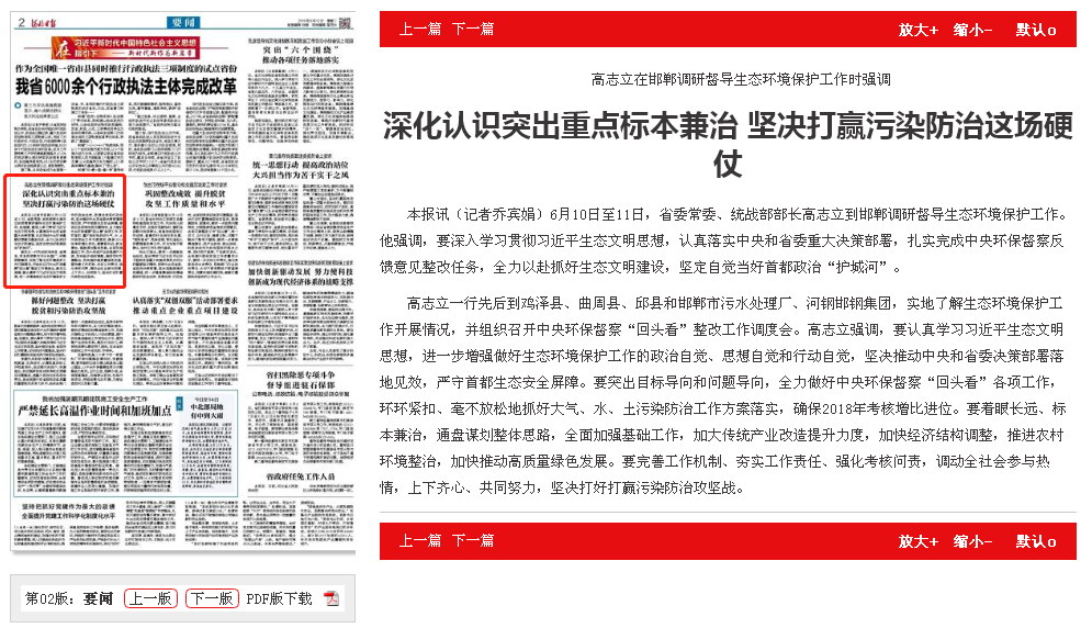 河北日报:深化认识突出重点标本兼治 坚决打赢污染防治这场硬仗