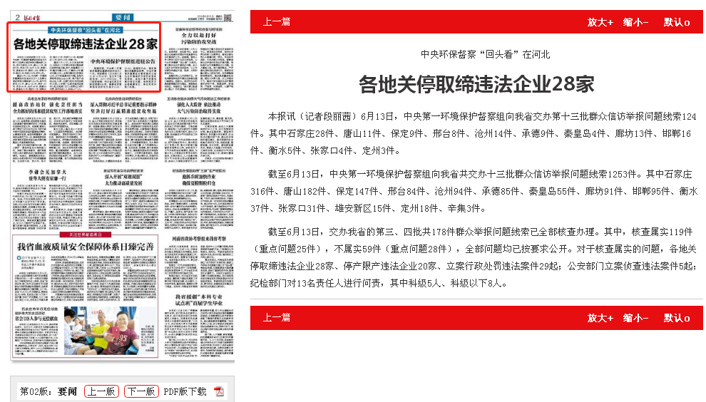 河北日报: 中央环保督察“回头看”在河北 各地关停取缔违法企业28家