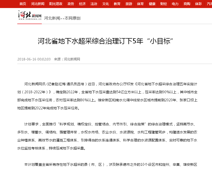 河北新闻网:河北省地下水超采综合治理订下5年“小目标”