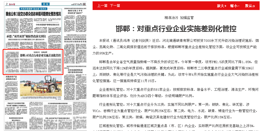 河北日报: 精准治污 加强监管 邯郸对重点行业企业实施差别化管控