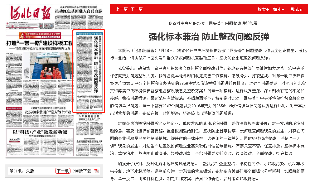 河北日报:我省对中央环保督察“回头看”问题整改进行部署 强化标本兼治 防止整改问题反弹