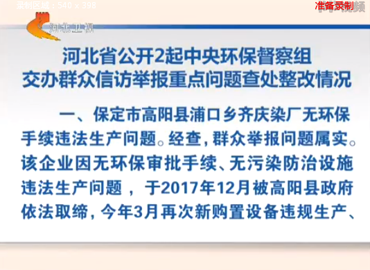 河北卫视-河北新闻联播:河北省公开2起中央环保督察组交办群众信访举报重点问题查处整改情况