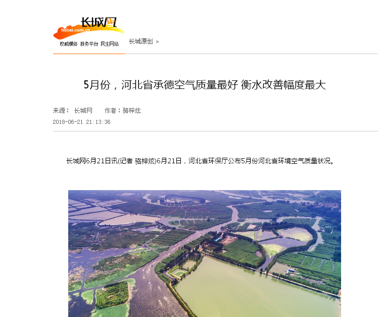 长城网:5月份,河北省承德空气质量最好 衡水改善幅度最大