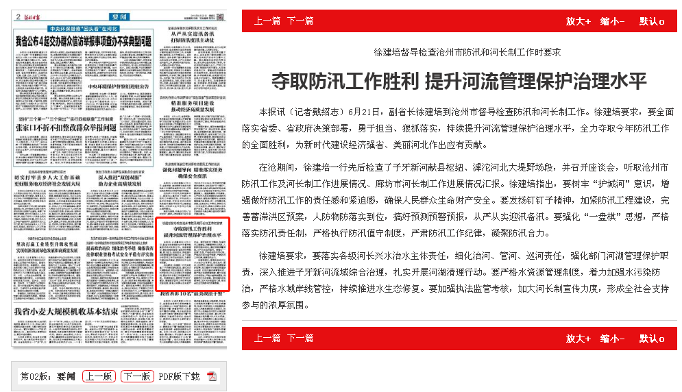 河北日报:徐建培督导检查沧州市防汛和河长制工作时要求 夺取防汛工作胜利 提升河流管理保护治理水平