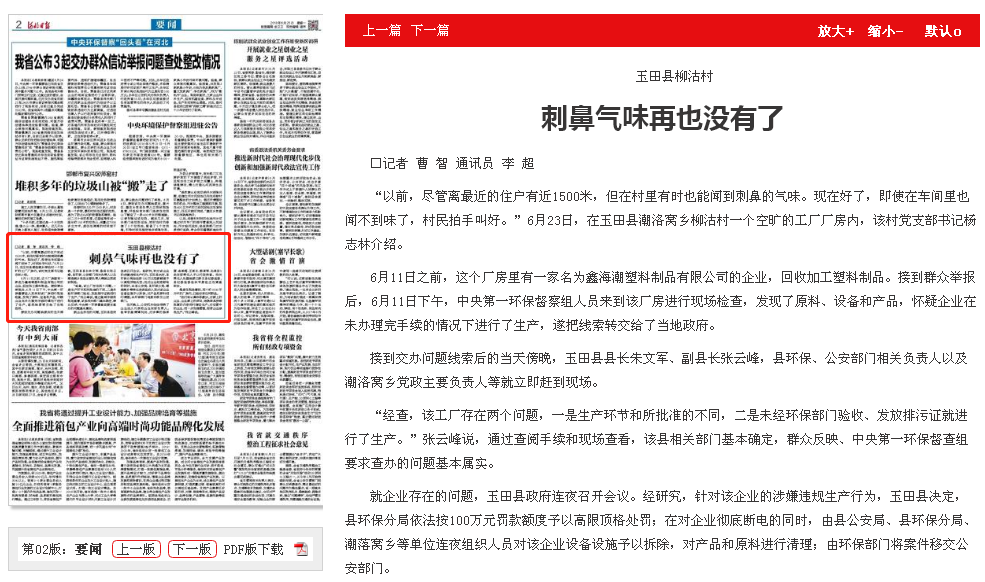 河北日报:玉田县柳沽村 刺鼻气味再也没有了