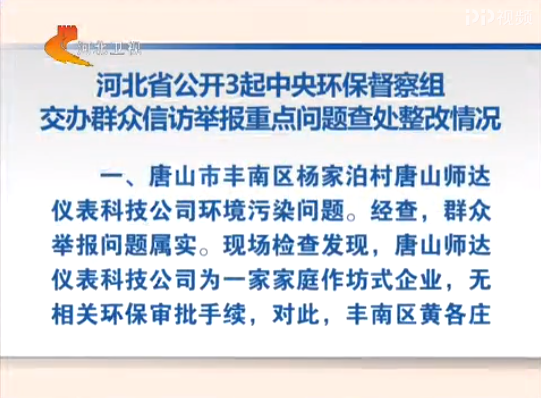 河北卫视 河北新闻联播:河北省公开3起中央环保督察组交办群众信访举报重点问题查处整改情况