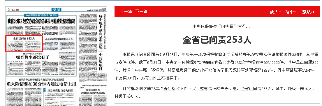 河北日报:中央环保督察“回头看”在河北 全省已问责253人