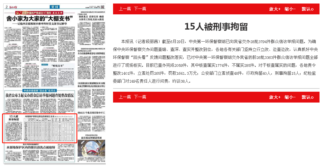 河北日报:中央环保督察“回头看”在河北 15人被刑事拘留