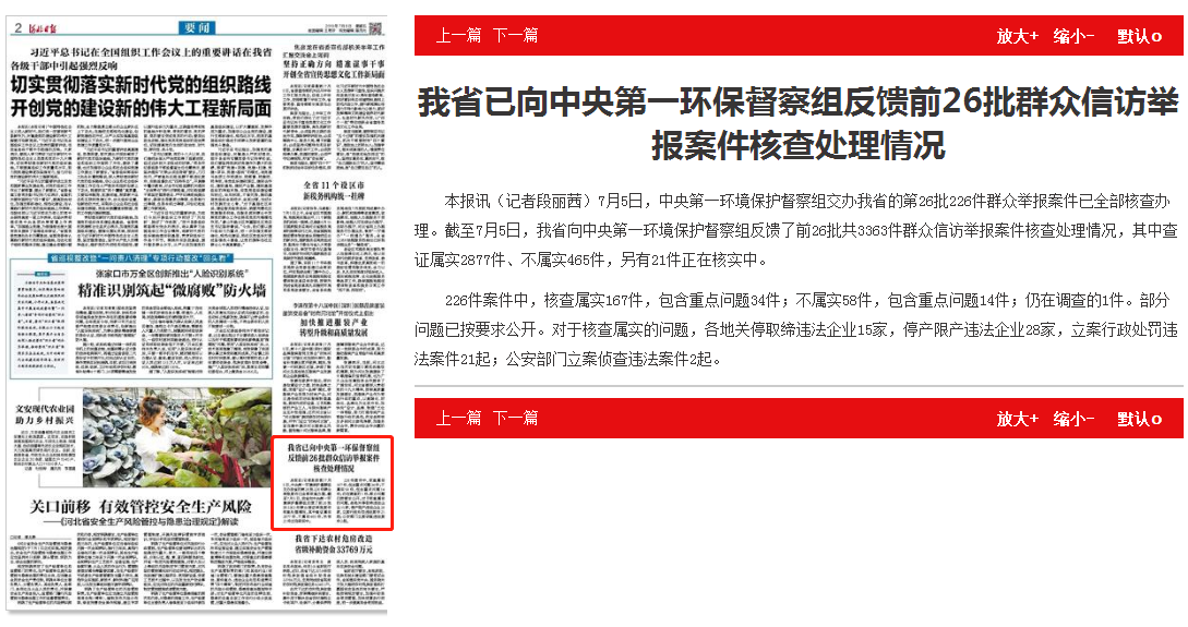 河北日报:我省已向中央第一环保督察组反馈前26批群众信访举报案件核查处理情况