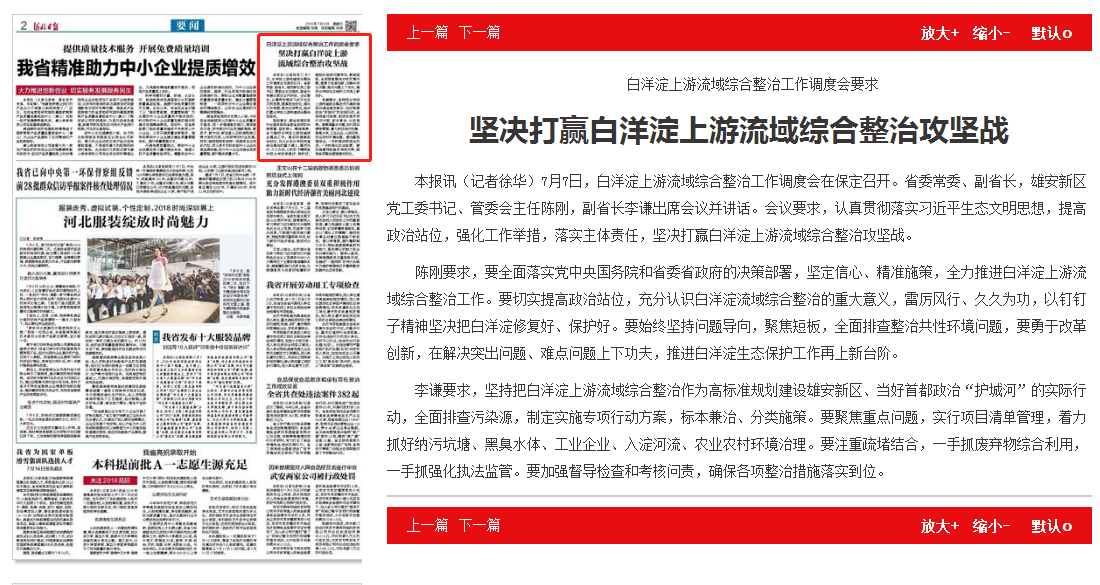河北日报:坚决打赢白洋淀上游流域综合整治攻坚战