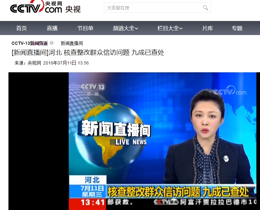CCTV-13新闻频道 新闻直播间:河北 核查整改群众信访问题 九成已查处