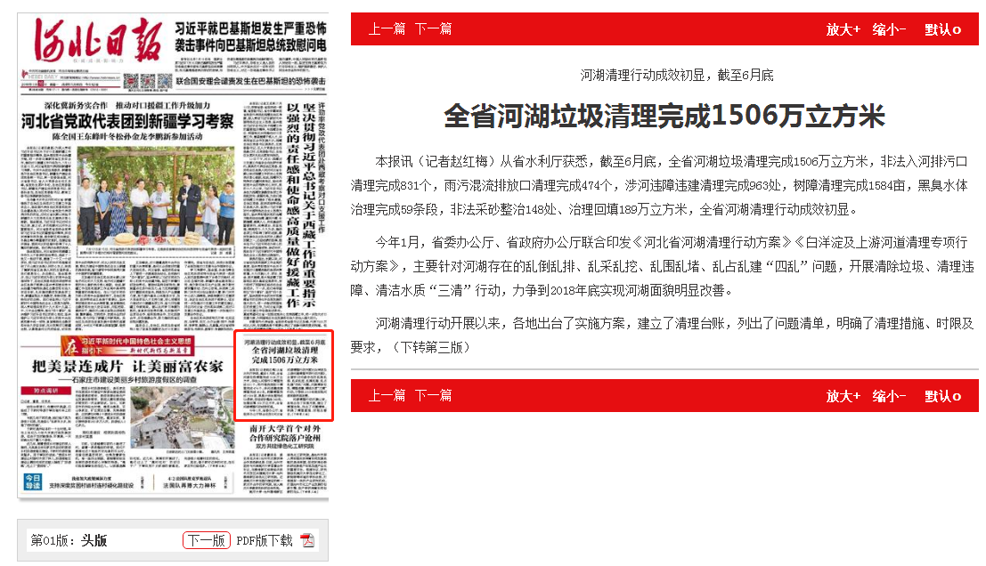 河北日报:全省河湖垃圾清理完成1506万立方米