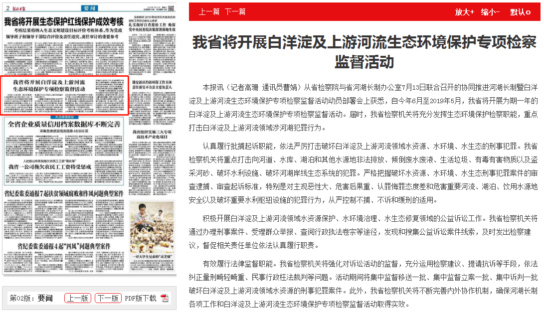 河北日报:我省将开展白洋淀及上游河流生态环境保护专项检察监督活动