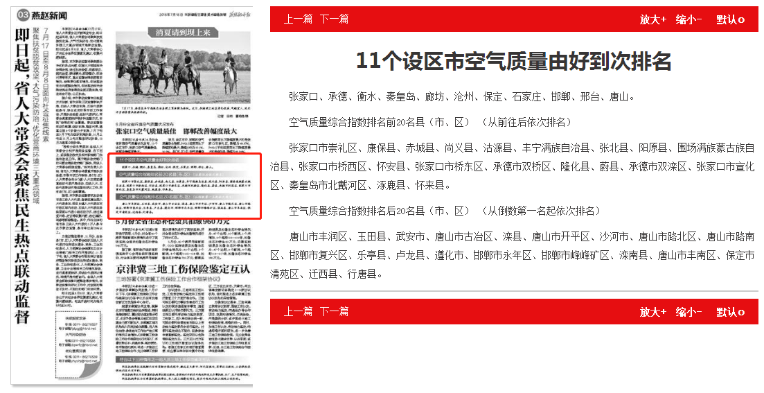 燕赵都市报:11个设区市空气质量由好到次排名