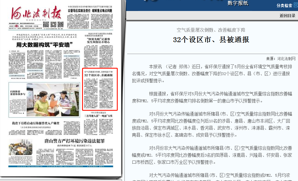 河北法制报:空气质量屡次倒数、改善幅度下降 32个设区市、县被通报