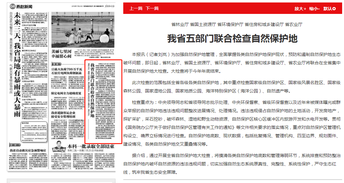 据介绍,通过开展全省自然保护地大检查,将摸清各类自然保护地底数和管理薄弱环节,系统排查和预防整治自然保护地内破坏自然资源的违法违规问题,切实加强自然生态系统原真性、完整性、系统性保护,严守生态红线,筑牢我省生态安全屏障。