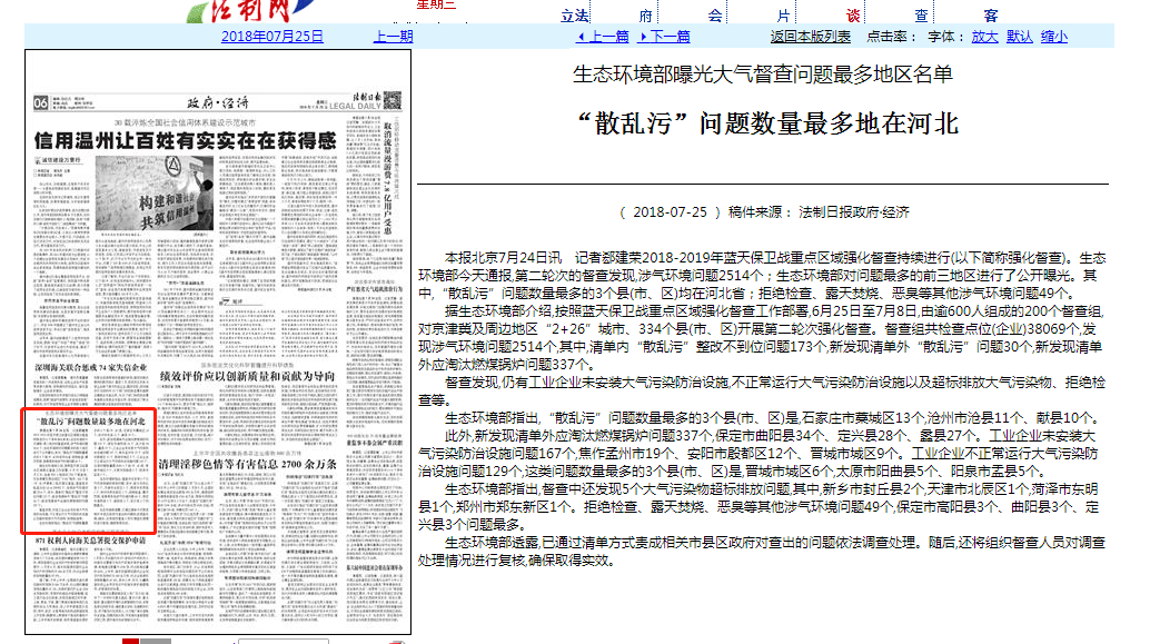 ( 2018-07-25 ) 稿件来源: 法制日报政府·经济