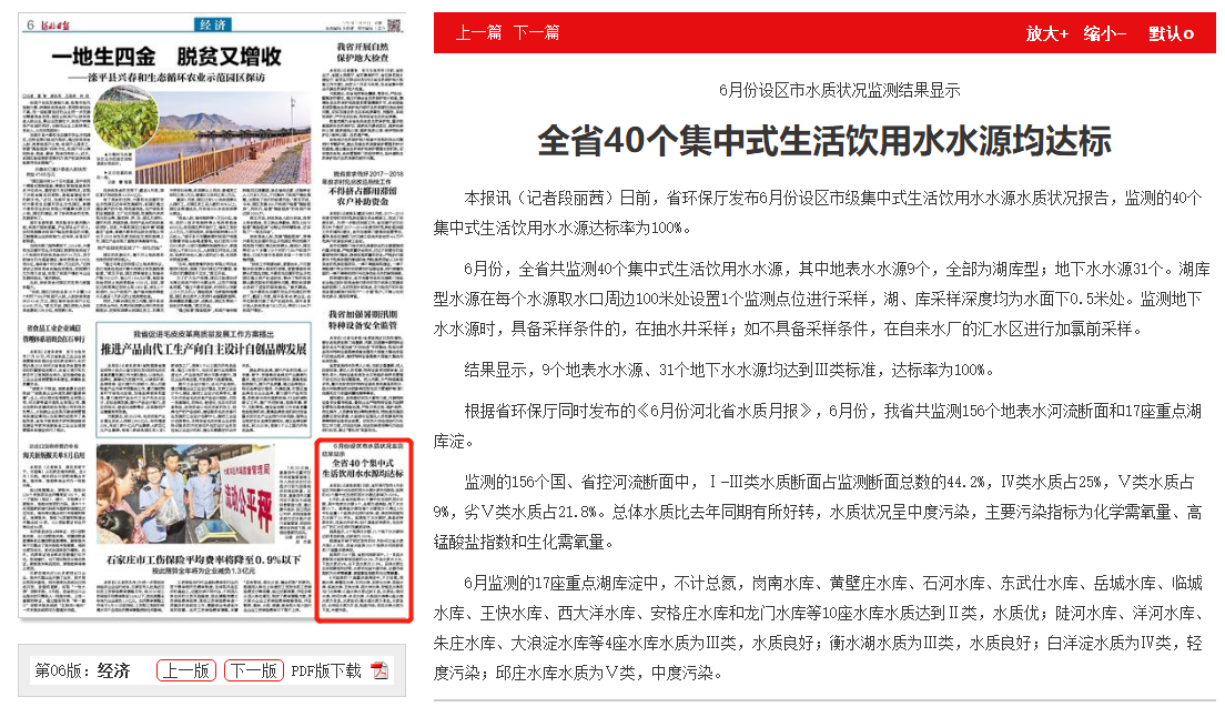 根据省环保厅同时发布的《6月份河北省水质月报》,6月份,我省共监测156个地表水河流断面和17座重点湖库淀。