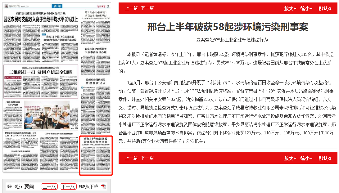 河北日报:邢台上半年破获58起涉环境污染刑事案