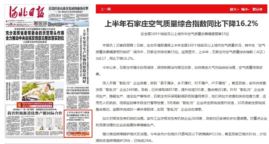 河北日报:上半年石家庄空气质量综合指数同比下降16.2%