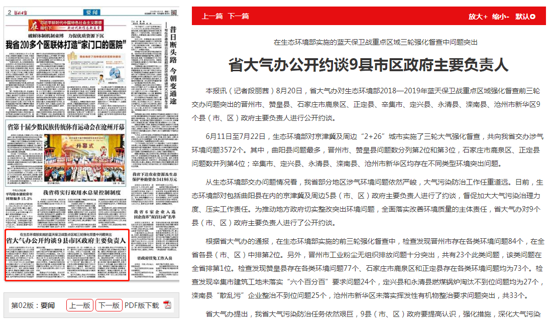 河北日报:省大气办公开约谈9县市区政府主要负责人