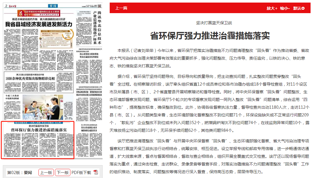 河北日报:坚决打赢蓝天保卫战 省环保厅强力推进治霾措施落实