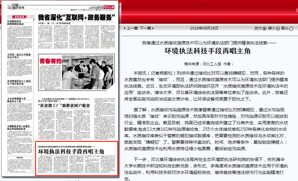 下一步,河北省环境综合执法局将在杏彩执法研究院的协调下,依托清华大学长期技术积淀和科技创新优势,多形式、多角度将水质指纹溯源技术应用于环境执法实战中,利用科技手段对涉水环境超标排放、偷排偷放等违法排污行为实施精准打击。