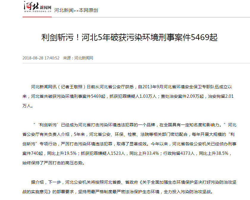 河北新闻网:利剑斩污!河北5年破获污染环境刑事案件5469起