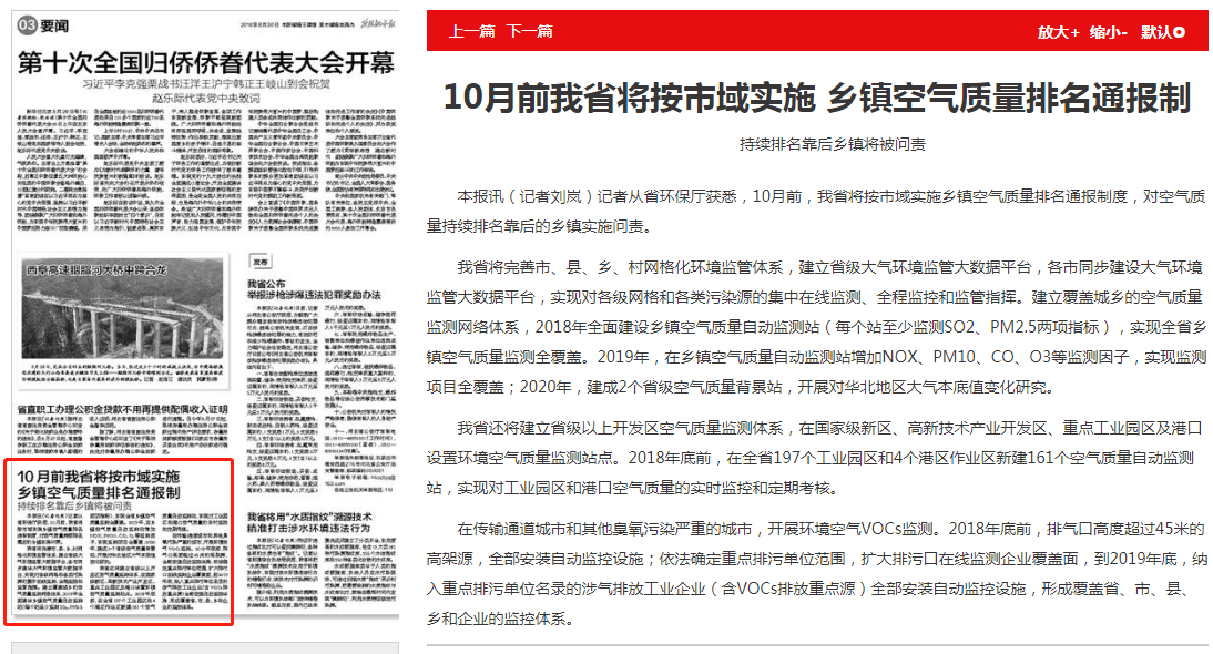燕赵都市报:10月前我省将按市域实施 乡镇空气质量排名通报制