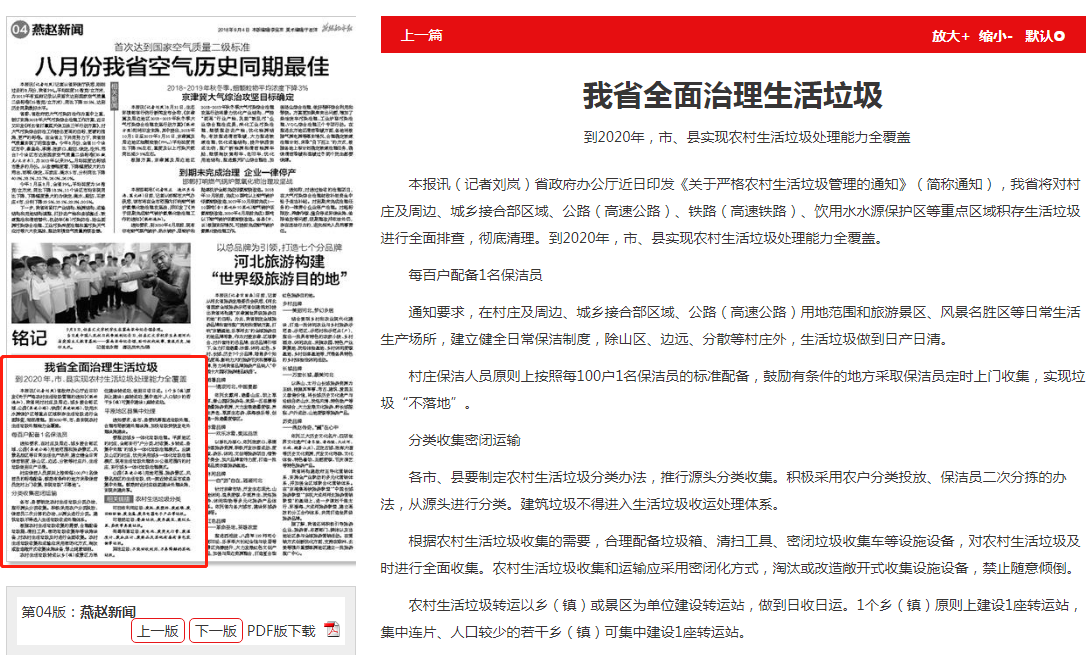 本报讯(记者刘岚)省政府办公厅近日印发《关于严格农村生活垃圾管理的通知》(简称通知),我省将对村庄及周边、城乡接合部区域、公路(高速公路)、铁路(高速铁路)、饮用水水源保护区等重点区域积存生活垃圾进行全面排查,彻底清理。到2020年,市、县实现农村生活垃圾处理能力全覆盖。