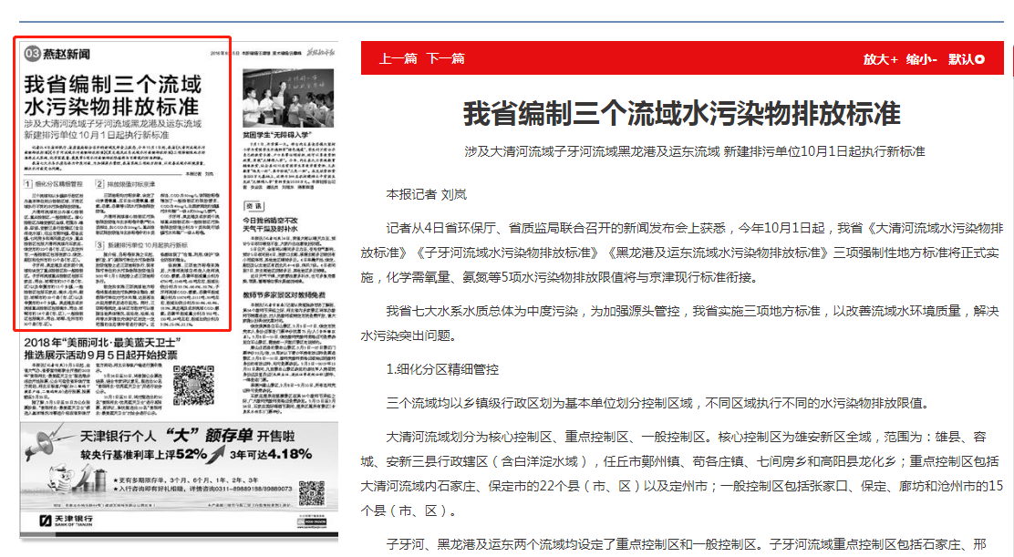 燕赵都市报:我省编制三个流域水污染物排放标准