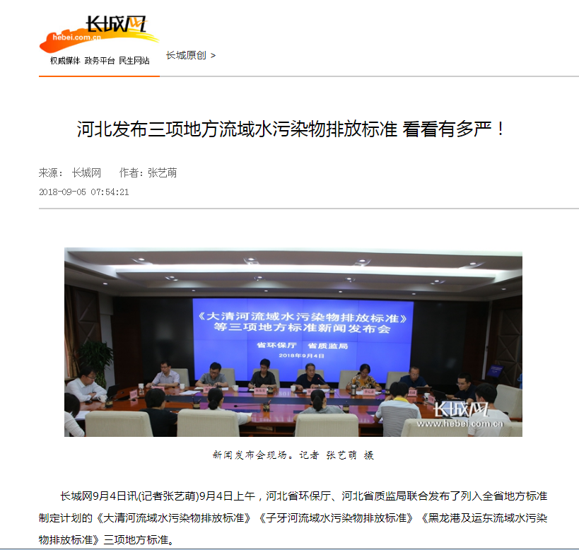 长城网:河北发布三项地方流域水污染物排放标准 看看有多严!