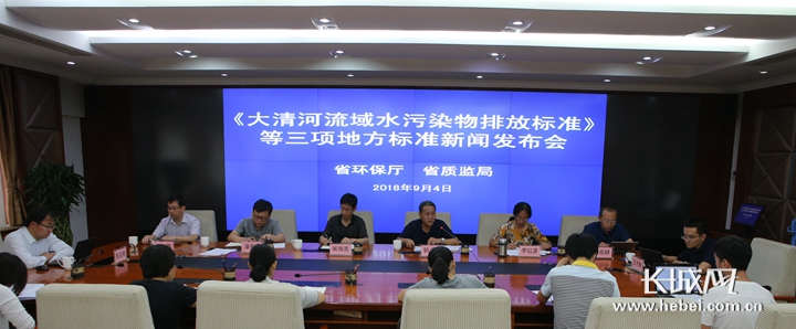 长城网9月4日讯(记者张艺萌)9月4日上午,河北省环保厅、河北省质监局联合发布了列入全省地方标准制定计划的《大清河流域水污染物排放标准》《子牙河流域水污染物排放标准》《黑龙港及运东流域水污染物排放标准》三项地方标准。