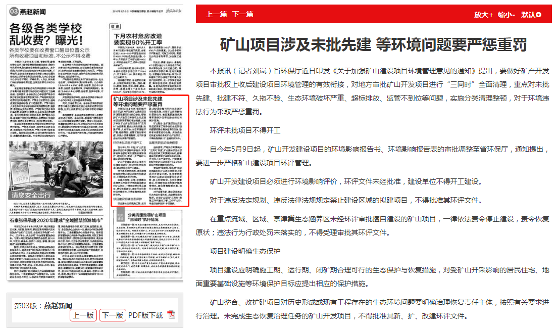 燕赵都市报:矿山项目涉及未批先建 等环境问题要严惩重罚