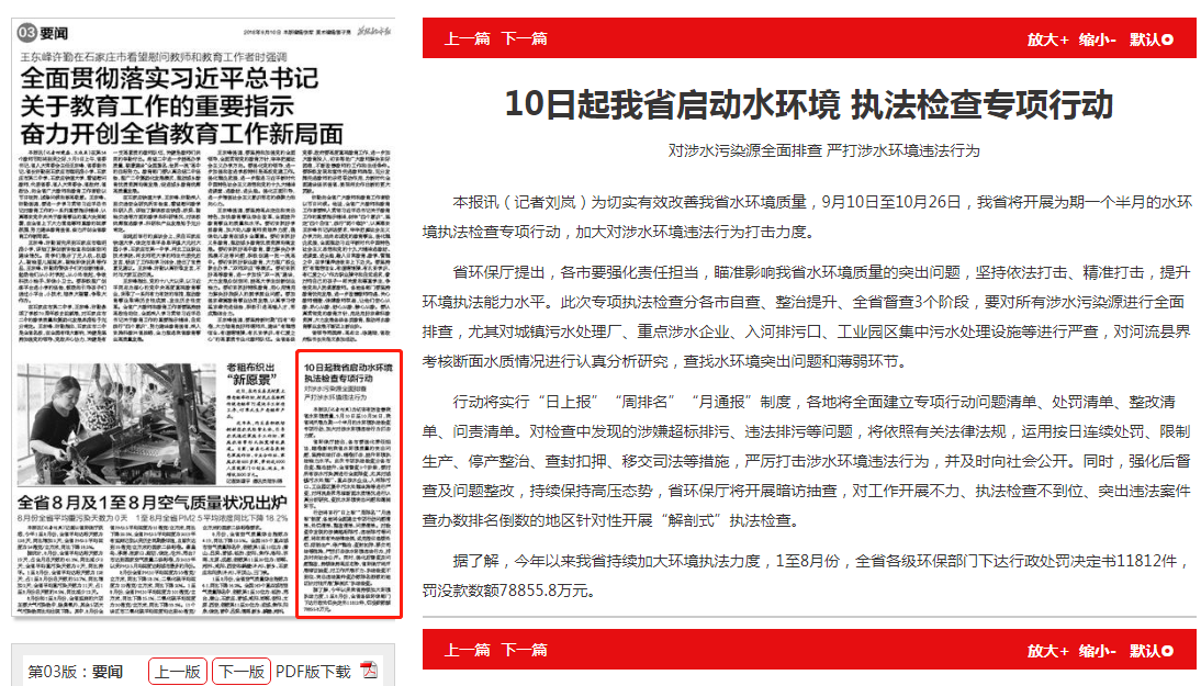 燕赵都市报:10日起我省启动水环境 执法检查专项行动