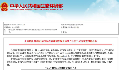 河北新闻网:8月“2+26”城市PM2.5平均浓度同比下降18.6%