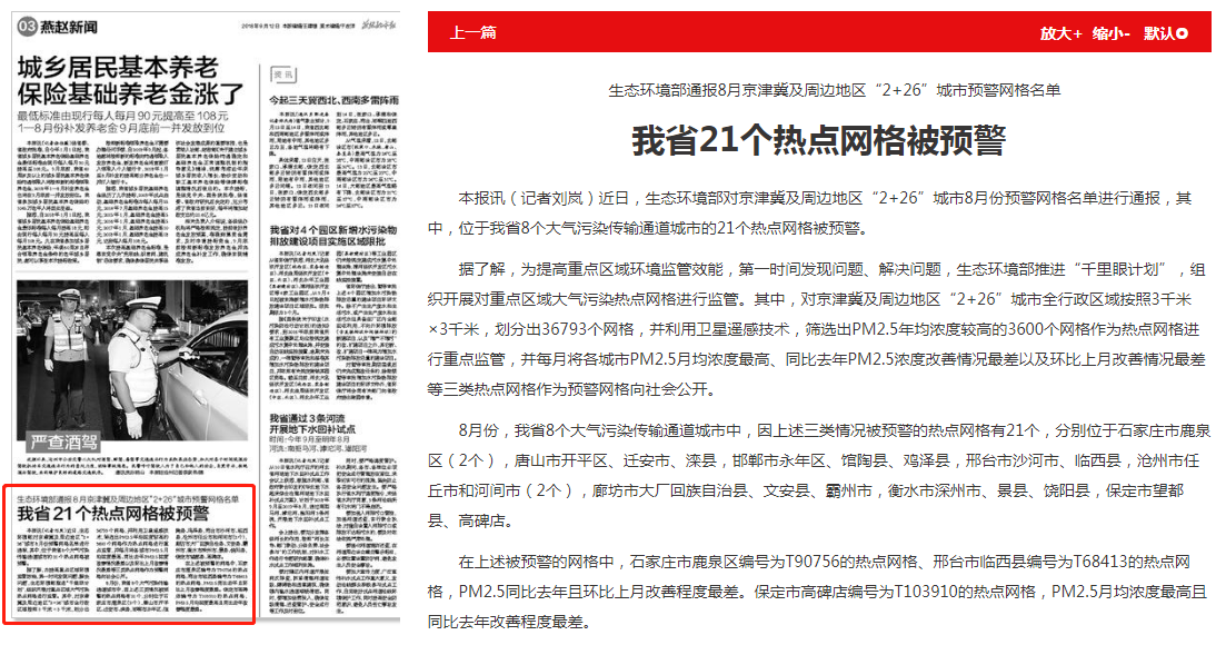 燕赵都市报:我省21个热点网格被预警