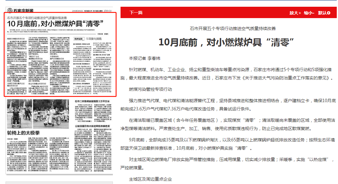 9月底前,全部完成35蒸吨及以下燃煤锅炉淘汰,以及65蒸吨以上燃煤锅炉超低排放改造任务;按照杏彩蓝天保卫战最新排查标准,10月底前,对小燃煤炉具实施“清零”。