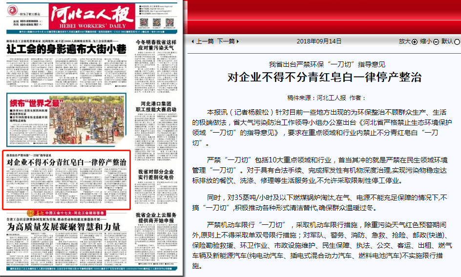 河北工人报:对企业不得不分青红皂白一律停产整治