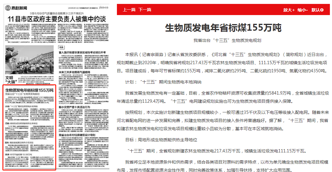 燕赵都市报:生物质发电年省标煤155万吨